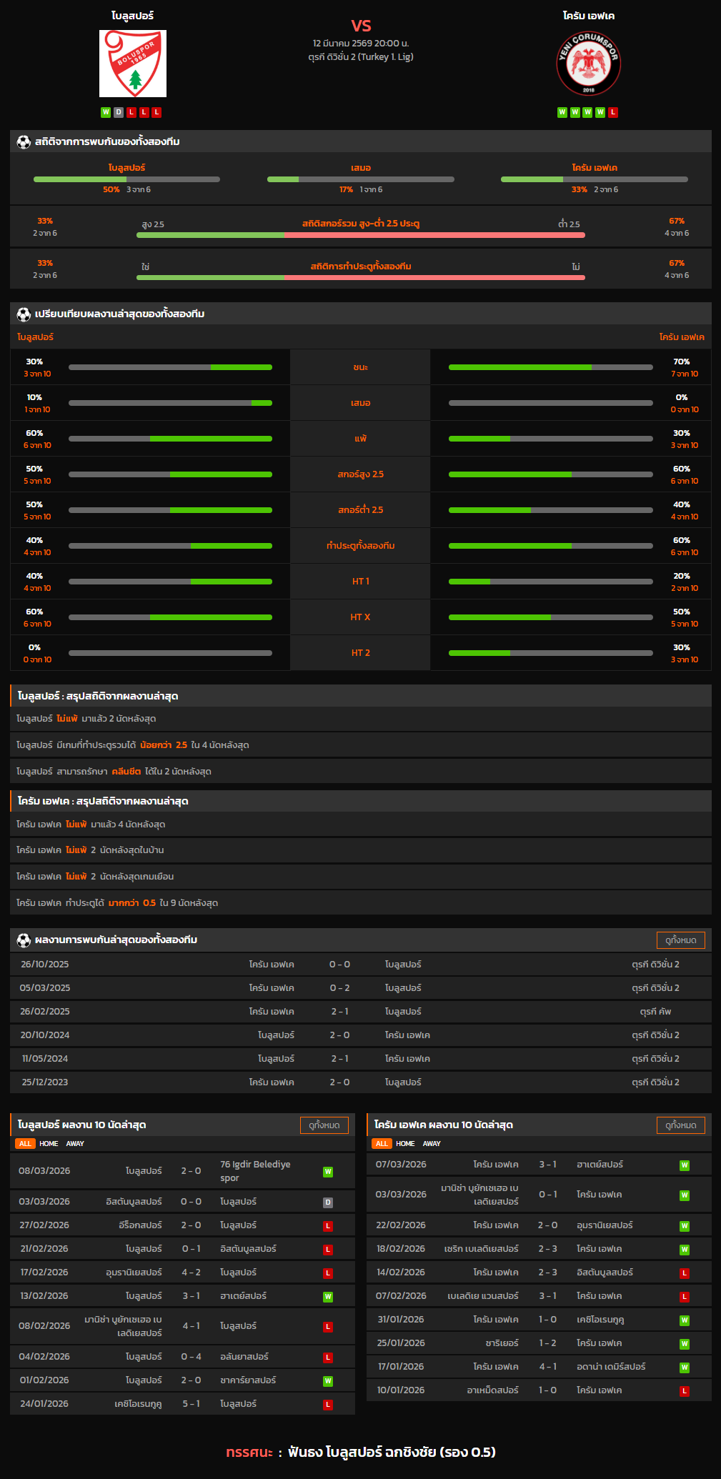 วิเคราะห์บอล ตุรกี ดิวิชั่น 2 2025-26 โบลูสปอร์ VS โครัม เอฟเค